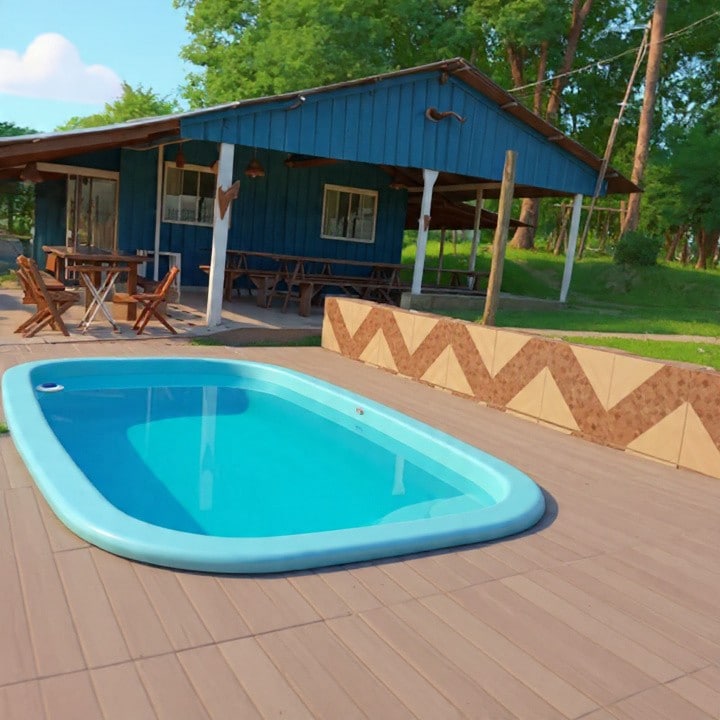 Olá, conheça a Estância Ponta Serrana. Nosso espaço conta um espaço externo, onde temos: - Piscina - Gramado Amplo com rede de Vôlei - Redes para descanso - Cama elástica - Cozinha externa com churrasqueira - Banheiro Além da nossa casa confortável e aconchegante, com: - 03 quartos com 02 camas de casal cada quarto - 01 Banheiro - Cozinha Ampla com churrasqueira - Mesa de Bilhar - TV Venha conhecer.