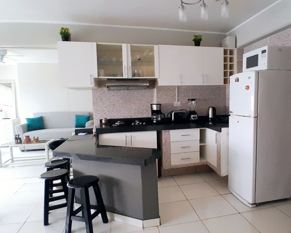 Moderne og hyggelig lejlighed på 8. sal i en bygning med sikkerhed døgnet rundt, kun få skridt fra Kennedy Park, Miraflores Boardwalk, Larcomar og det nationale stadion. Det ligger tæt på restauranter, caféer, supermarkeder, apoteker og banker. Bygningen har pool, fitnesscenter, forretningscenter, børneklub, grillområde og sikkerhed døgnet rundt. Lejligheden tilbyder højhastigheds-Wi-Fi, et fuldt udstyret køkken, vaskemaskine og gratis parkering – perfekt til familieudflugter, arbejde eller afslapning.