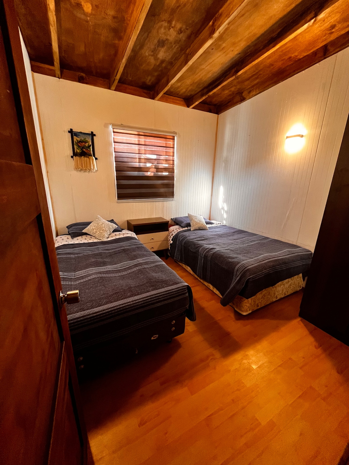 Hytten ligger i første sal med separat indgang, komfortabel, rolig og sikker til at kunne slappe af. Godt udgangspunkt for at kunne udforske byen til fods, i bil eller med offentlig transport. Med to supermarkeder i nærheden og få skridt fra Calle Calle-broen, hvorfra du kan få direkte adgang til Valdivias strandpromenade, et meget smukt sted at gå en tur om eftermiddagen og nyde natten i Valdivia. Med adgang til Isla Teja via Cau Cau-broen.