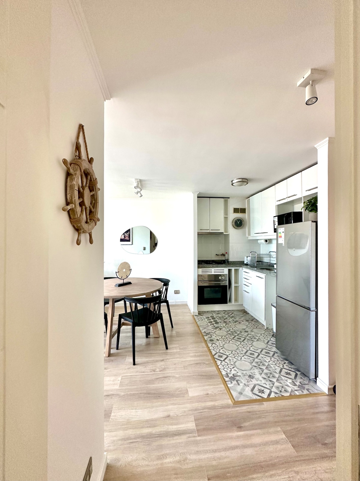 ✨ Nyd en moderne, komfortabel og fuldt udstyret lejlighed i Las Condes i et sikkert og roligt område, kun 6 minutters gang fra Hernando de Magallanes Metro. Ideel til turister, ledere eller dem, der kommer for at arbejde eller fjernarbejde. Den har en dobbeltseng, sovesofa og et behageligt arbejdsområde med fremragende internetforbindelse. Beliggende i nærheden af supermarkeder, restauranter og tjenester med fremragende forbindelse til resten af Santiago.