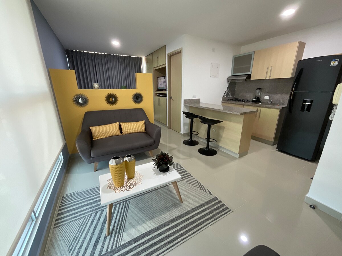 Smuk lejlighed med et soveværelse, fuldt udstyret: Dobbeltseng og en enkeltseng (skydeseng), integreret køkken, spisekammer, badeværelse, stue. Aircondition i værelset, 40" tv, satellit-tv, mikrobølgeovn, vaskemaskine, køleskab. 300 Mb WiFi. Ledig til karneval, skal bookes for alle fire dage. Overdækket parkeringsplads. Beliggende i Ciudad Jardín, tæt på Comfamiliar del Norte, Universidad Metropolitana og Parque Sagrado Corazón.