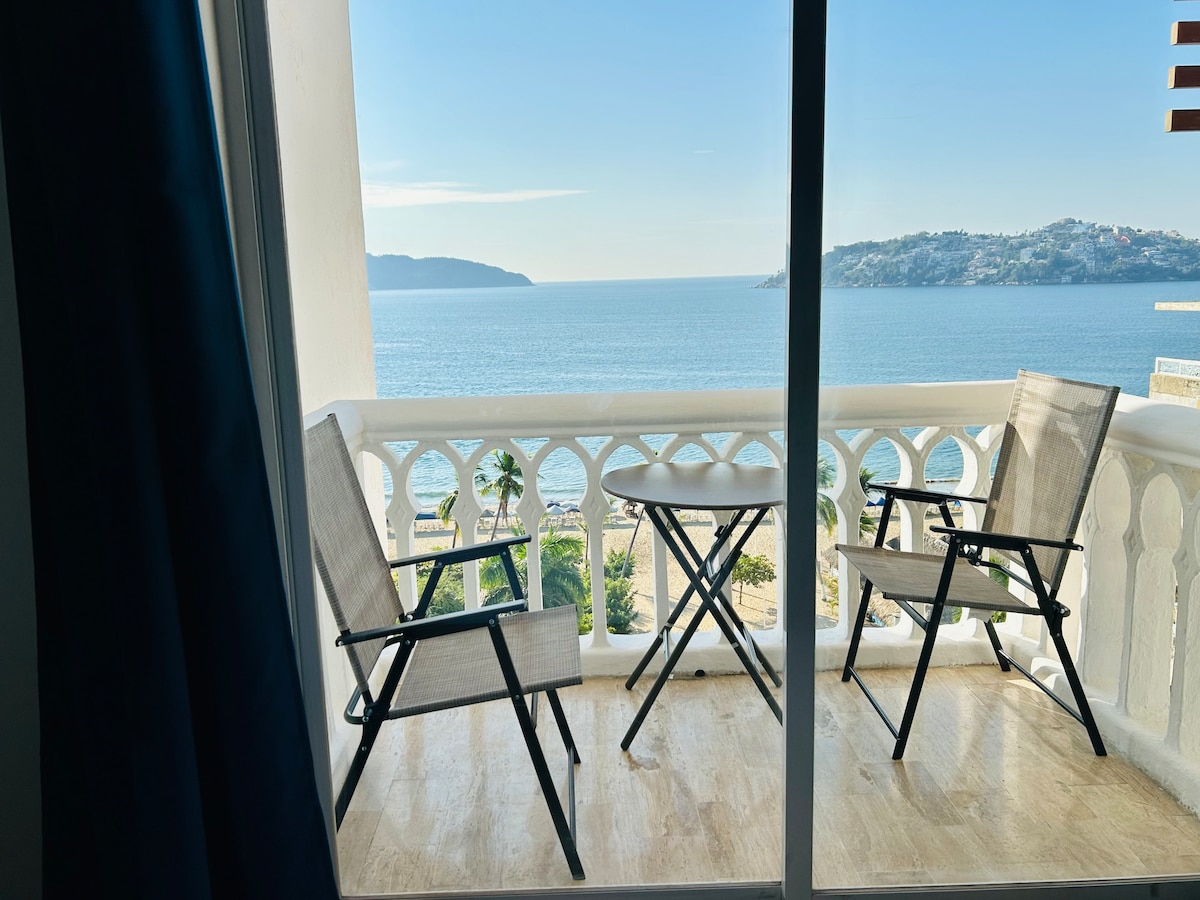 Hyggelig lejlighed med en fremragende udsigt over Acapulco Bay. Privatliv og uden støj for at have en behagelig ferie. To soveværelser, to komplette badeværelser, udstyret køkken, aircondition og loftsventilatorer til at afkøle hele lejligheden. Poolen ligger kun få skridt fra dig, og du kan nyde udsigten. Lejligheden er nyrenoveret, så det meste er nyt og klar til brug. Med en fremragende beliggenhed, så du kan nyde strandene.