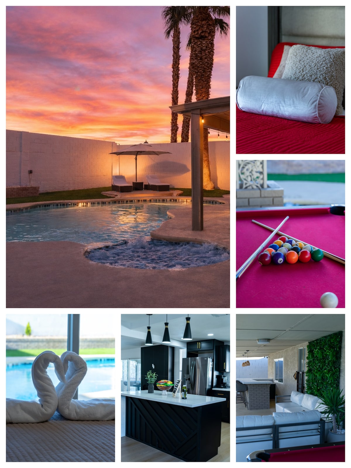 Nyrenoveret Las Vegas-hjem væk fra hjemmet med en resort-pool, specialfremstillede bålpladser, ny moderne Clearwater-jacuzzi med over 100 jets og vandfunktioner, som du kan slappe af og nyde, et udendørs køkken med grill og terrasse og et sjovt udendørs spilområde! Dette enfamiliehus med en casita ligger få minutter fra udendørs eventyr, spænding og elskede lokale attraktioner. Nyd en afslappet, moderne boheme-stil med gennemtænkte detaljer, der sikrer et behageligt og mindeværdigt ophold.