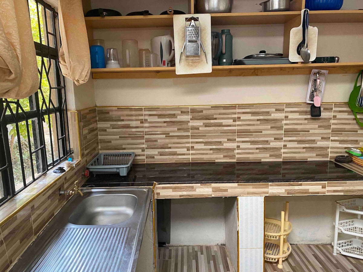 Nyd en unik blanding af moderne komfort og autentisk afrikansk stil i vores indbydende hjem. Praktisk beliggenhed kun 1 minuts kørsel fra hovedvejen C102, 5 minutter fra byen Kimana og 30-40 minutter fra Amboseli National Park. Stuen kan deles i højsæsonen, hvilket giver en afslappet, social atmosfære. Der tilbydes ikke måltider, men der kan laves aftaler om mad på stedet efter anmodning. NB: Dette er en etværelses, og fællesområder omfatter en stue i et separat område.