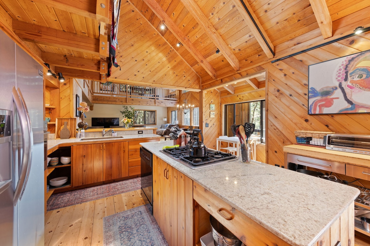 Tag på ferie til vores afsondrede luksuriøse håndværkerbolig beliggende i Nevada Citys foden af bjergene, håndbygget af Hart-familien. Denne fredelige 3-værelses feriebolig tilbyder en betagende udsigt, moderne faciliteter og gammel verdens charme. Dette private fristed er perfekt til familier eller vennegrupper og er din ultimative udflugt. Vores hjem ligger 25 minutter fra downtown Nevada City, og kun 10 minutter fra South Fork af Yuba River. Kom og nyd nogle af de bedste cykel-, vandreture og adgang til floden i amtet.