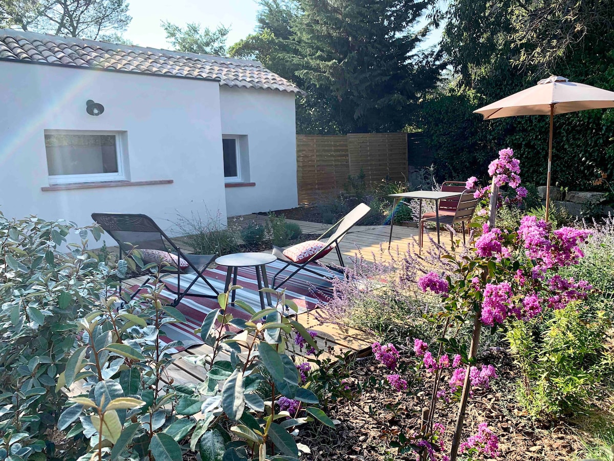 PERFEKT TIL PAR - Et lille selvstændigt hus venter på dig i vores have. I skyggen af vores figen og vores store fyrretræer, er denne bolig ideelt placeret til din ferie i Sète. I hjertet af Corniche-distriktet finder du ro til at forfriske dig efter dine dage med sightseeing eller strand. Strandene (crique de l'Anau, plage du Lazaret) er tilgængelige til fods (800 m), stranden la Baleine og byens centrum ligger 5 minutter væk i bil. Meget nem parkering.