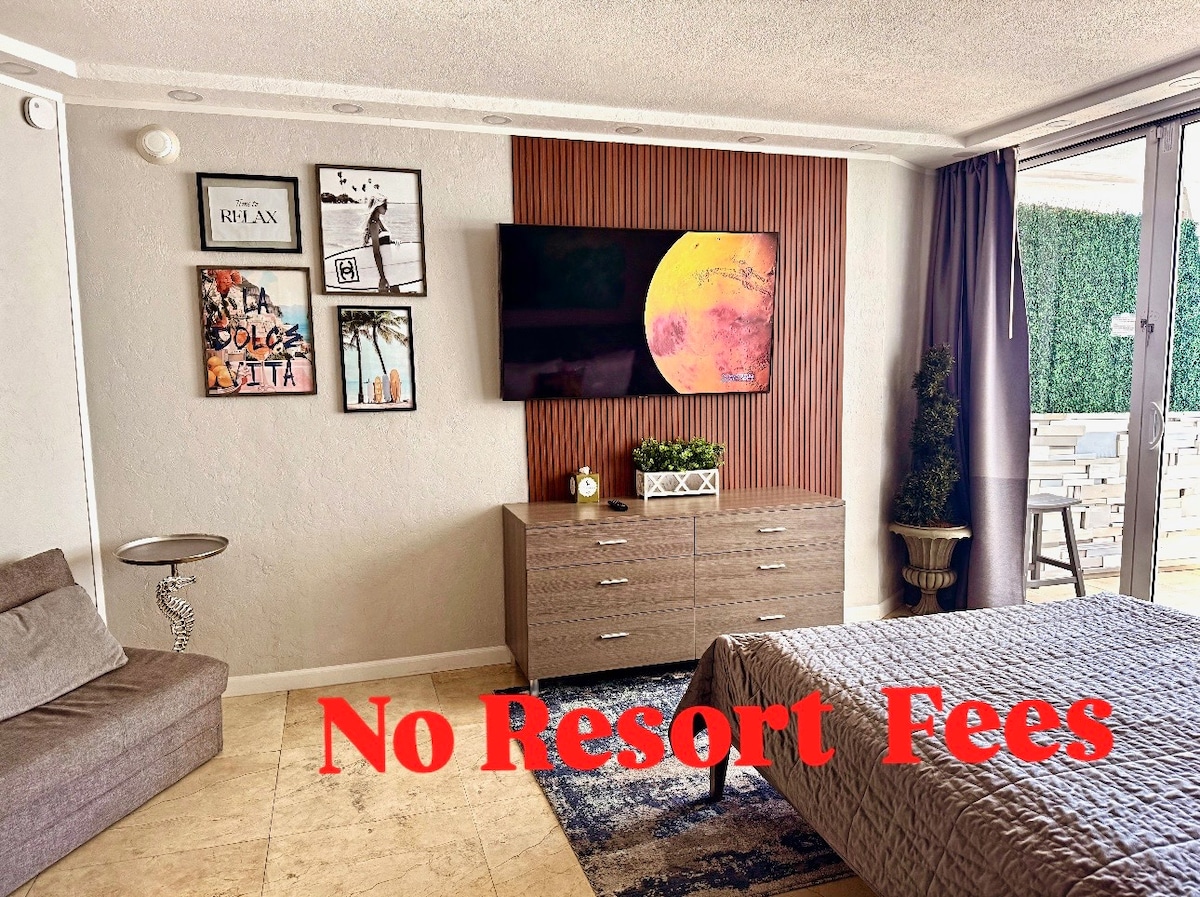 Ocean / Beach side views from master bed & indoor balcony! Beach is on premises - Free beach access- No resort fee! Fully Renovated NOTE: WE HAVE 3 UNITS-INQUIRE IF Booked . Sleeps 9-Large cozy 2 bedroom condo -Large pool. Located on premises :Spa-Coffee bar-Yoga-Tiki Bar-Sports bar-Happy Hour-D.J -Jet ski rentals ( next door ) & more..Outdoor Dining on the beach- indoor restaurant with entertainment Free shuttles to local restaurants! 2 blocks from Dunkin-Liquor-Publix -pizza-& more