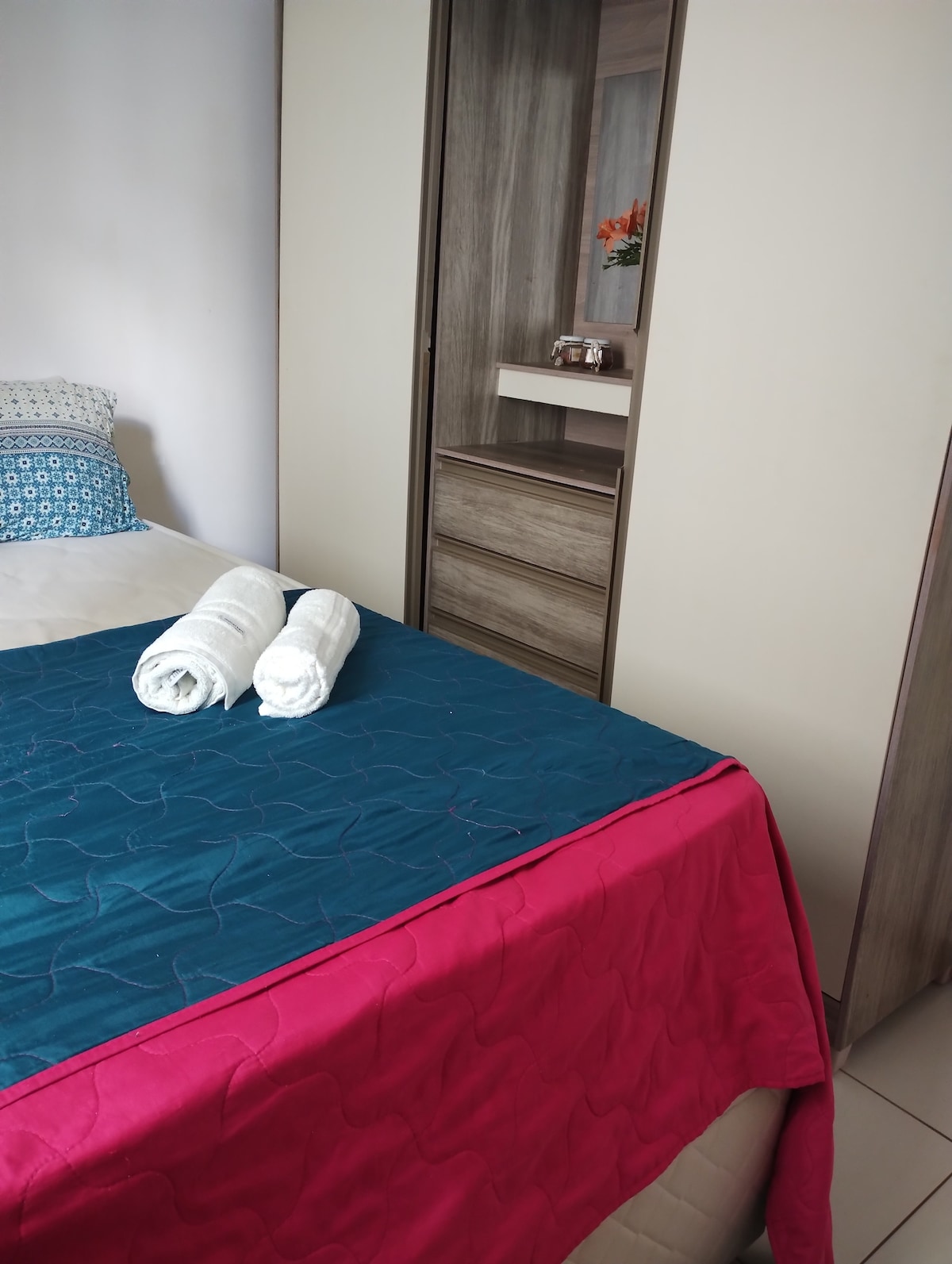 Stille og sikker indkvartering med nyt klimaanlæg på dobbeltværelset. Lejlighed på 52 m2, 2 soveværelser, rum integreret med køkkenet, 1 badeværelse og balkon. Nord-syd, spirende. Infrastruktur med sikkerhed og døgnåben concierge, pool for voksne og børn, fitnesscenter osv. Privilegieret beliggenhed ved siden af markeder, restauranter, apoteker, barer osv. 3 senge: 1 dobbeltseng, 2 enkeltsenge (du kan sætte to enkeltsenge sammen for at danne en dobbeltseng) BEMÆRK: Der vil blive opkrævet for elforbruget under opholdet i slutningen i henhold til Coelbas KW.