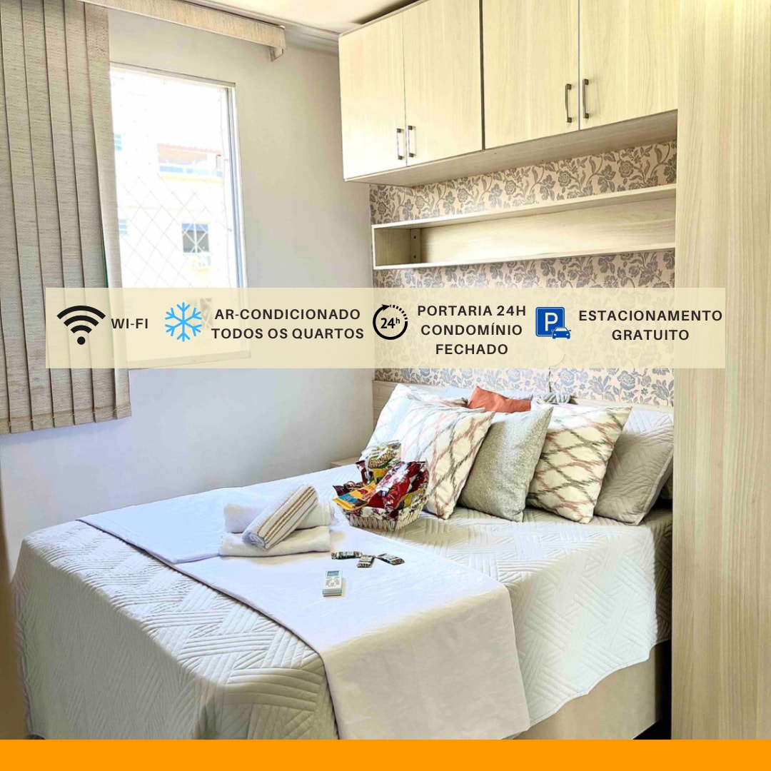 🍃☀️ Costa Norte Home - din ferielejlighed i Bahia! Der er 3 soveværelser (et suite), alle med aircondition, rummelige, vender mod øst (morgensol), syvende sal, betjent af to elevatorer, stille og fredeligt. Den rummer op til 6 personer, god struktur for børn, indbydende og familiebolig. 700 m - Praia de Buraquinho/Vilas do Atlântico 10 km – lufthavn 6 km - Sportsarena 30 km - Centro Histórico de Salvador
