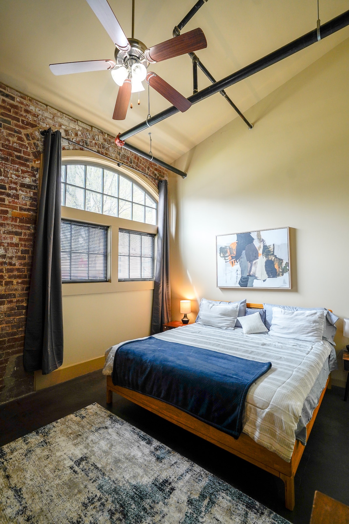 Lys og luftig 1BR/1BA med sovesofa i Warehouse Arts District over en komplet restaurant og et bryggeri. Rigelig gratis parkering, privatliv og faciliteter samt 20% rabat på Lawrence Beer Company, der er inkluderet i dit ophold. Denne bolig er den perfekte ledsager til Cider Gallery Event space, der ligger ved siden af. Book et ophold på 2-3 nætter, og hav en brudesuite, hvor du kan lave hår og makeup, medbring dine gaver og dekorationer efter din reception, og tag 1 minuts gang fra sengen.
