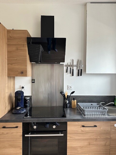 Denne 2-værelseslejlighed ligger tæt på alle faciliteter og tilbyder absolut komfort. Den har en queensize-seng og et rummeligt omklædningsrum. Køkkenet er fuldt udstyret: mikrobølgeovn, brødrister, air fryer, Senseo kaffemaskine, induktionskogeplade og alle de nødvendige redskaber til at tilberede dine yndlingsretter. I stuen med et LED-tv, internetadgang og alle kanaler. Ideel til et behageligt ophold, der kombinerer funktionalitet og komfort, alt sammen i behagelige omgivelser nær Verrerie-parken.