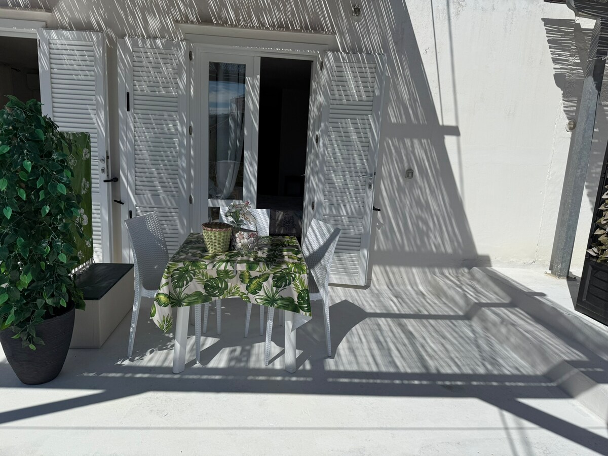 Den charmerende lejlighed har en delfinmosaik på terrassen, der gengiver en Pompeji-mosaik. Beliggende på en bakke, meget fredelig, afdækket af den grønne, totalrenoveret panoramisk lejlighed 2 personer med tv, airconditioneret luft og vaskemaskine. Udstyret eksklusiv terrasse med bord, stole, solseng, grill,udvendig bruser.