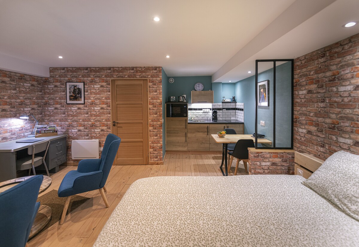 Atelier Haute Couture er en af de fem lejligheder i Ateliers du 7, beliggende i byens centrum (præfekturet). Lejligheden af typen T1 er beliggende i stueetagen i en indre gårdhave. Renoveret i industrielt look, elegant indretning med køkkenhjørne med ovn, køleskab med fryser, induktionskogeplader, Tassimo kaffemaskine, brødrister, kedel, 1 seng 160/190, stole, fladskærms-tv, badeværelse med bruser 140/80, omklædningsrum og kontor. Mere information på vores hjemmeside.