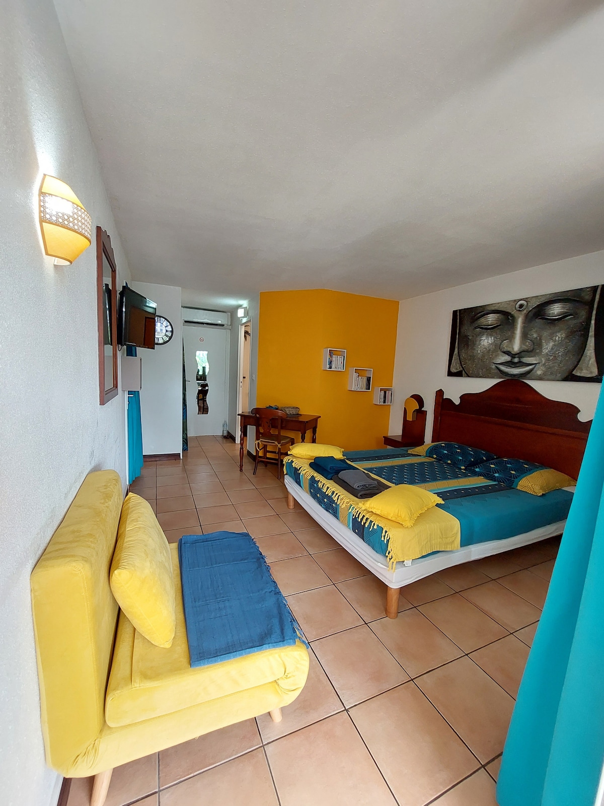 Vi tilbyder en uafhængig og fuldt udstyret lejlighed på 25m² med terrasse foran en tropisk have. Den ligger 5 minutters gang fra en af de smukkeste strande i Martinique, Pointe Marin. beliggende i den smukke by Sainte-Anne, hvor turismen er til stede, uden at være påtrængende. Hvis I kommer til Martinique som 2 par, skal I vide, at vi udlejer en anden lejlighed i samme hus, der er identisk med den første.