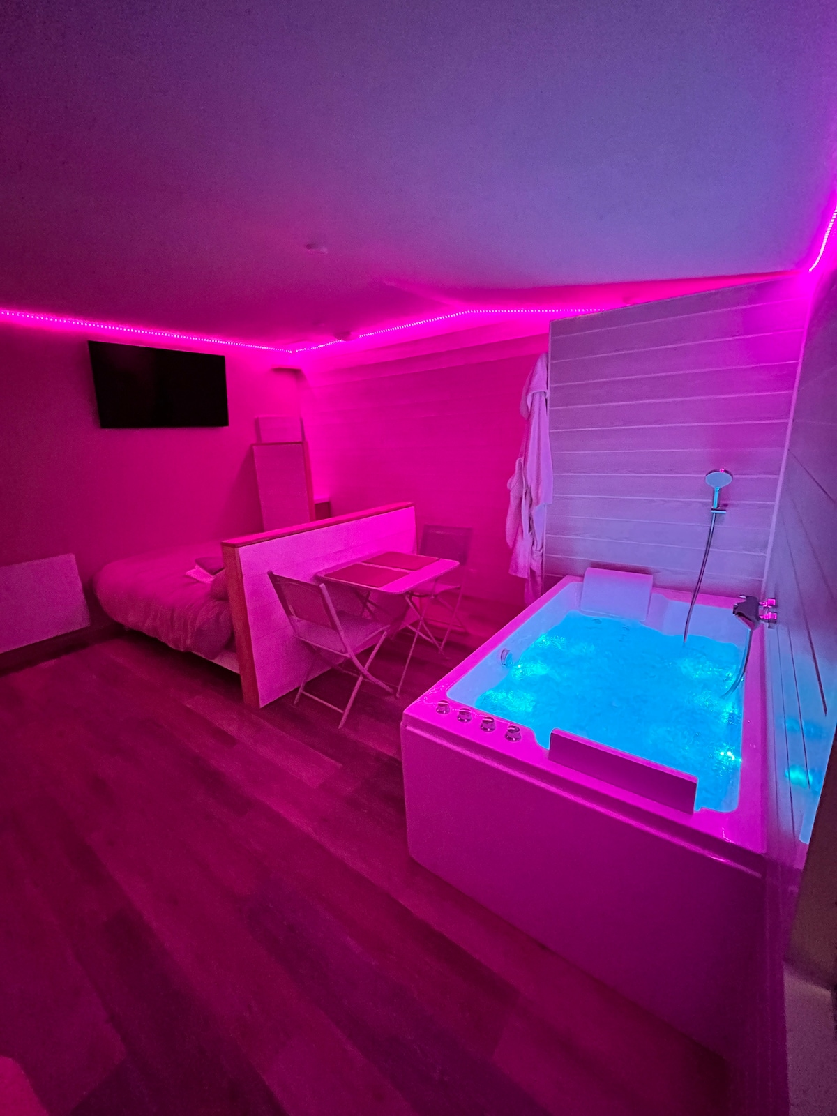 23m2 studie beliggende i hjertet af Poitevin-mosen. Køkkenområde med mikrobølgeovn, køleskab, elkogeplader og vask. Spiseplads med TV. Soveområde med en seng 140x190. Ekstra seng mulig efter anmodning til 1 eller 2 små børn. Badeværelse med brusebad, håndvask og håndklædetørrer. Toilet i badeværelset. Solrig terrasse til aperitiffer og/eller måltider. Gratis parkering på ejendommen Reservation mulig for 1 nat
