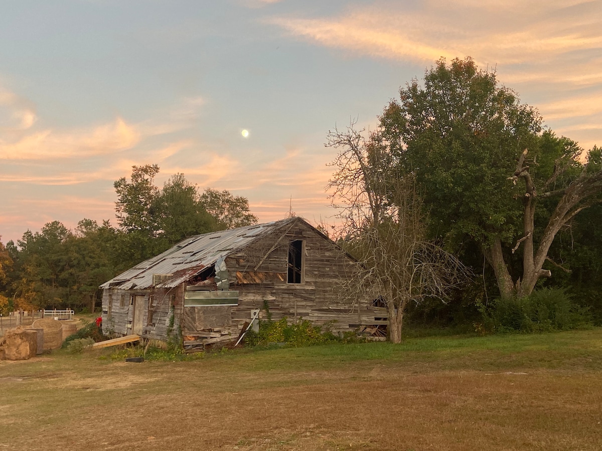 This 1940 brick farm house was built by my grandfather and tobacco was grown for years. He owned and operated the White Swann Trading Post and grill until his passing. We consider ourselves fortunate and enjoy sharing the beauty and wonder of this place with our family and now you. Today it is in transition from having been a sheep farm. In addition to nice walking and outdoor hangout spots on the 83 acres there is a 9 acre lake where you may enjoy fishing + non motorized boating! Welcome!