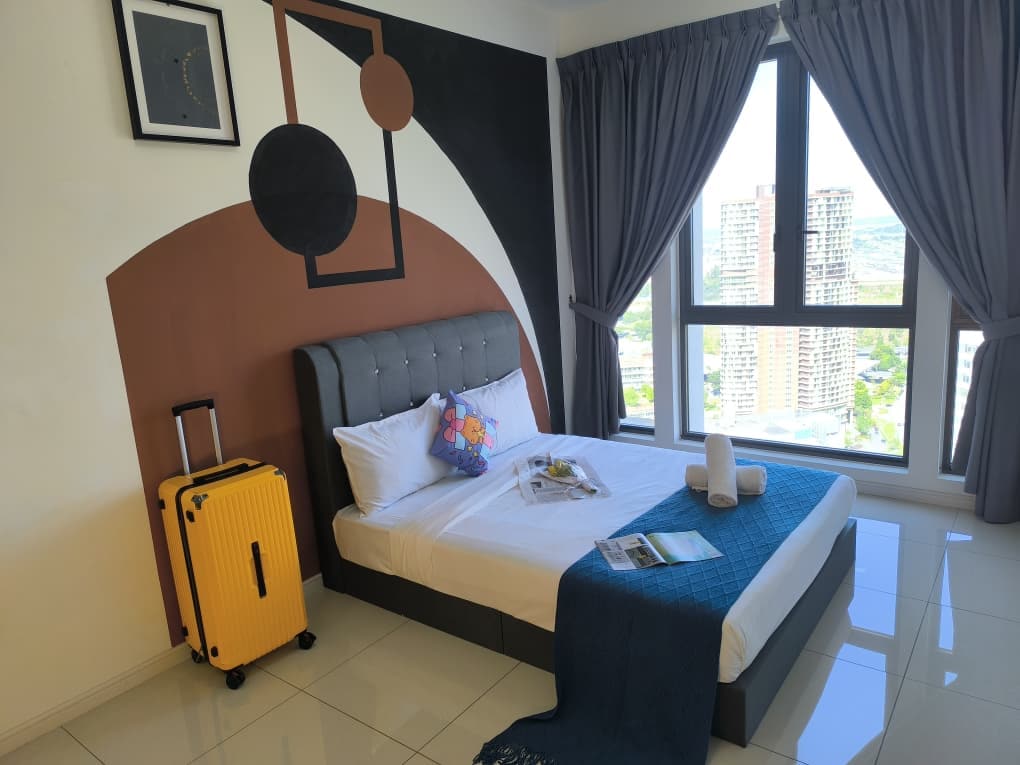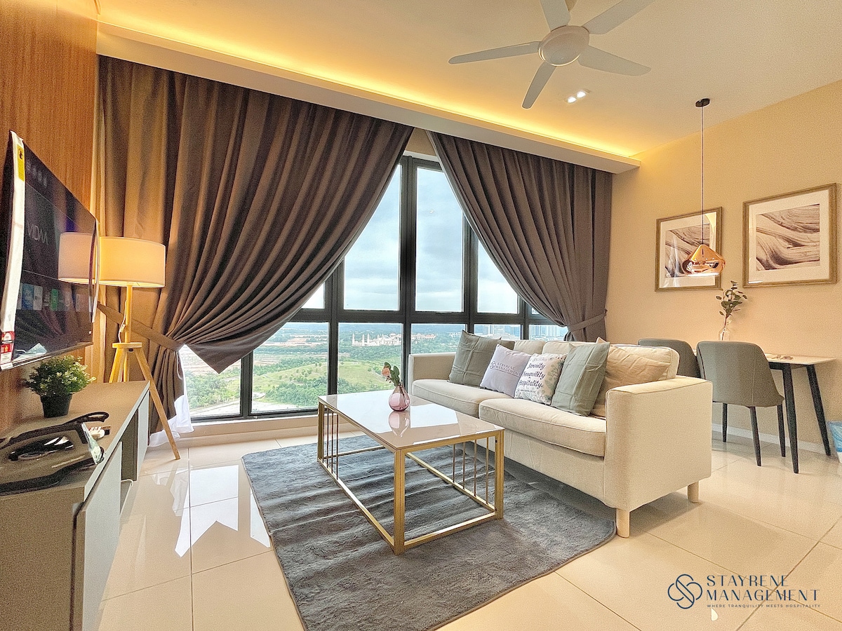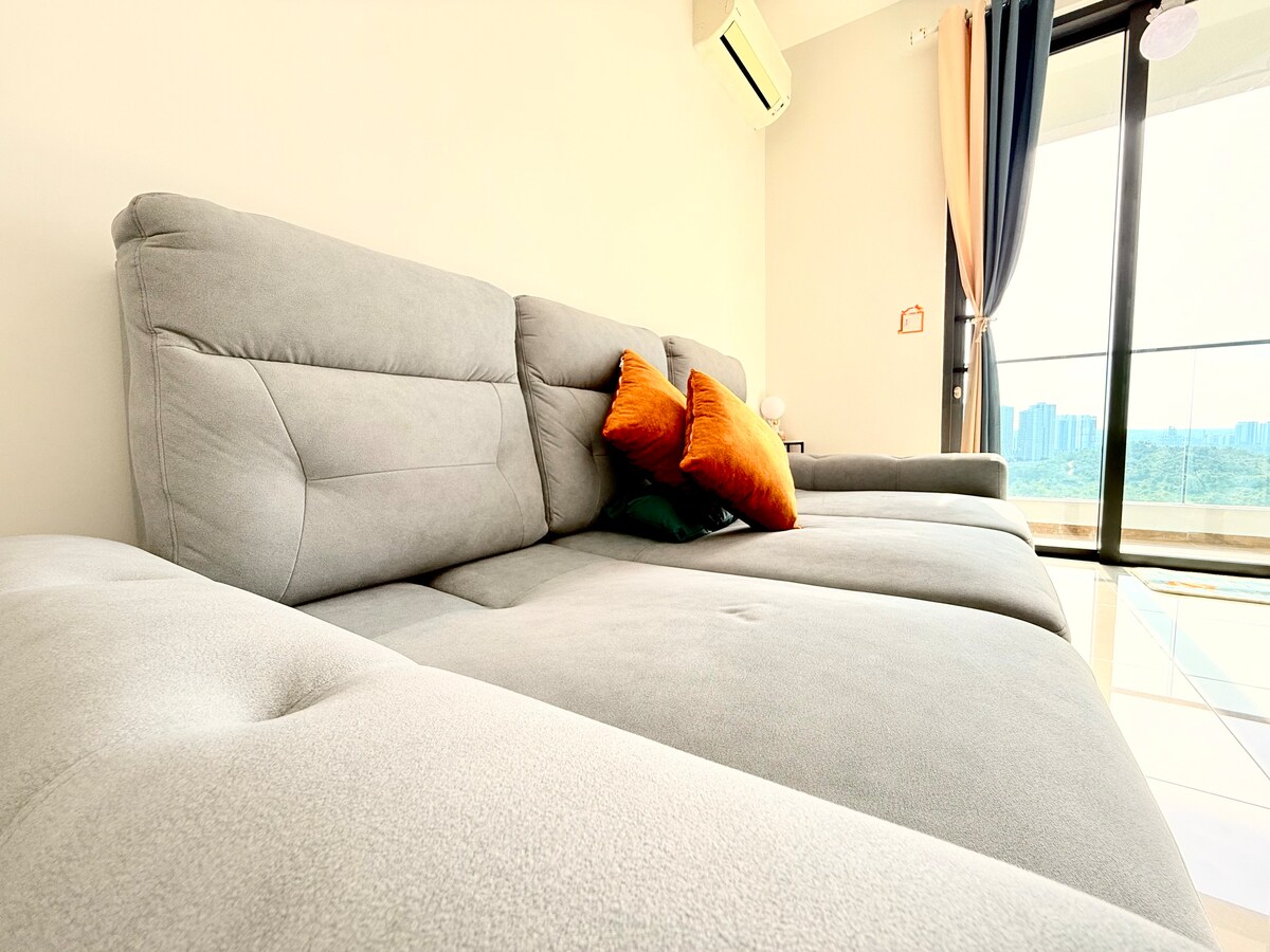 Elysia Park Residence 2bed 2Bath With one king size bed +one queen bed + 1 Single bed & Big sofa bed Can stay up to 6 pax . Suitable for family & friends gathering Peaceful & quiet environment Welcome to Zenith Homestay a place you can relax & chill with stunning view!