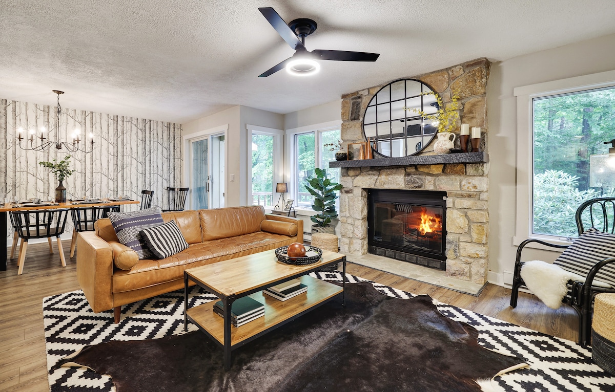 Tag på ferie i vores stilfulde naturhytte med 3 soveværelser i Poconos, nær Bushkill Falls og Shawnee Mountain. Nyd vores faciliteter såsom et brændende boblebad, bålplads, hængekøje, og en terrasse med en gasildsted med udsigt over den frodige gård. Slap af i vores solrum på komfortable møbler med udendørs-tv. Det rummelige køkken er perfekt til madlavning, mens hyggelige interiører med pejs i stuen og underholdningsmuligheder sikrer et mindeværdigt ophold. Perfekt til familier eller grupper, der søger afslapning og udendørs sjov.