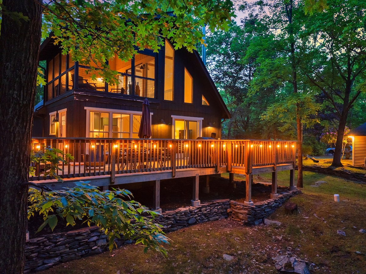 Pocono-chalet med adgang til sø og kajakker