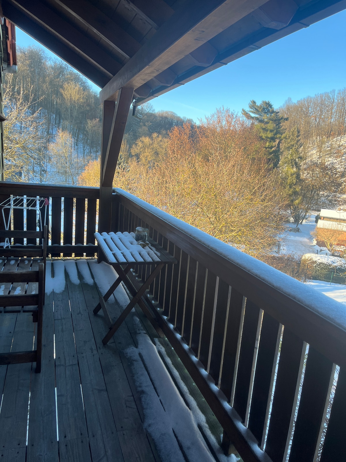 Ferielejligheden i Freiberg tilbyder alt, hvad du har brug for til en afslappende ferie. Boligen er fordelt på to etager og omfatter en stue, et veludstyret køkken, et soveværelse og et badeværelse, der kan rumme op til tre personer. Faciliteterne omfatter højhastigheds-wi-fi (egnet til videoopkald), et smart-tv og en vaskemaskine. Der er også en barneseng og en høj stol. Ferieboligen har et privat udendørsområde med en have, åbne og overdækkede terrasser og en grill.