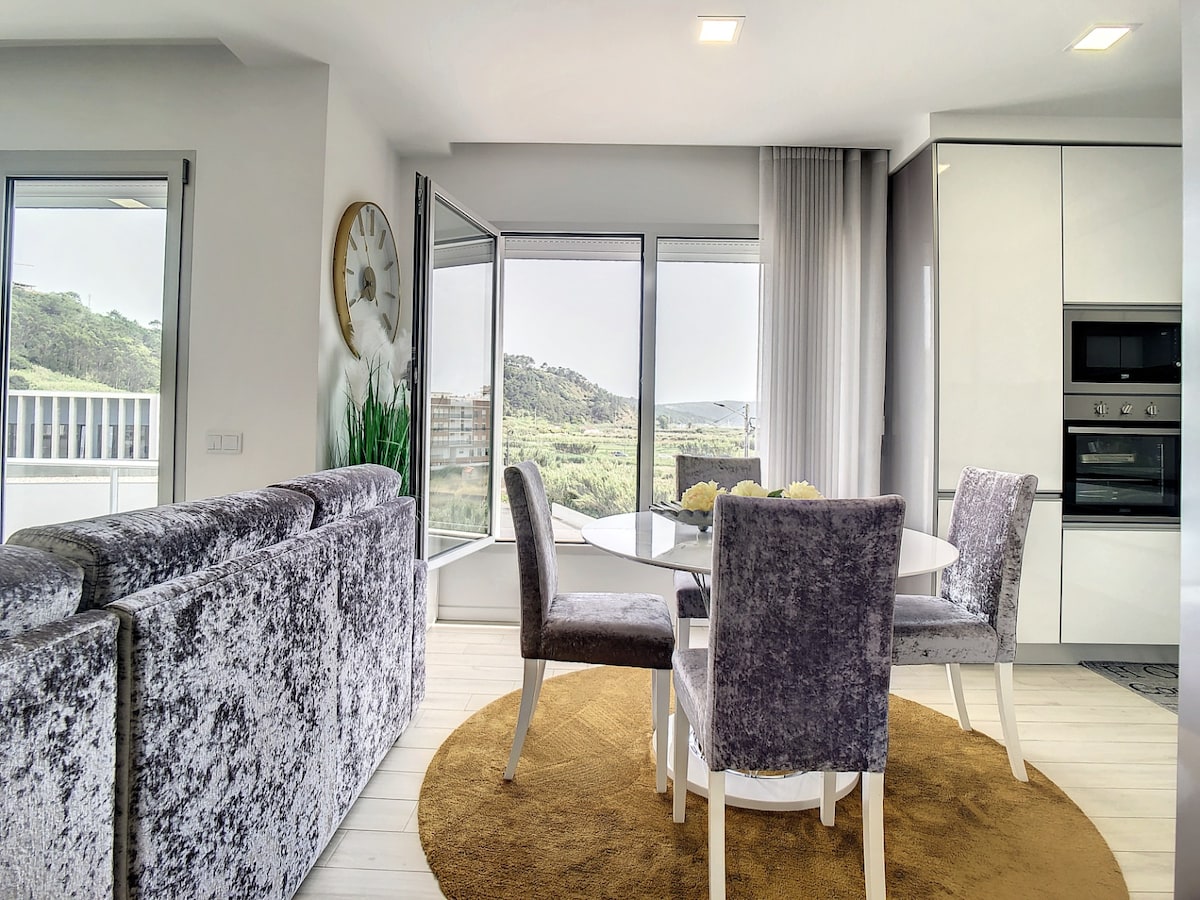 Rancho Tá-Mar Apartment Nazaré Beach ligger 250 meter fra stranden, med udsigt over marken, sol og en balkon, hvor du kan nyde udendørslivet. Stor lejlighed med køkken, der er udstyret med spisebord, kogeplade, komfur, kaffemaskine, kedel, mikrobølgeovn og køleskab. Stue med fladskærms-tv, kabel-tv, Wi-Fi og Netflix. To soveværelser med dobbeltseng, et privat badeværelse med bruser. Bygningen har elevator og privat parkeringsplads til gæsterne.