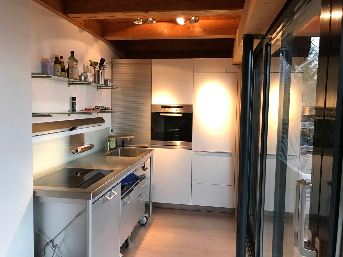 Loftslejlighed i studiet Denne stilfulde, hyggelige loftslejlighed i Etiennes atelier ligger i udkanten af skoven lige uden for Bad Ischl i Salzkammergut-regionen. Kunst- og naturelskere får noget for pengene her. Tag kontakt til kunstneren Etienne, som maler på første sal i atelieret. Udsigten over det maleriske bjerglandskab er betagende. Fra terrassen på østsiden kan du nyde morgensolen til morgenmaden og have en vidunderlig udsigt over haven med en dam og et grillområde.