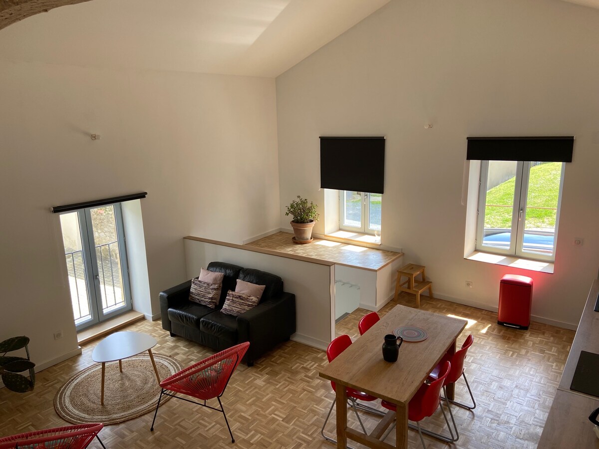 20 minutter fra Lyon, lige ved Beaujolais, i absolut ro. Oprindeligt var dette den prægtige stue i slottet, og nu er boligen blevet fuldstændig renoveret, hvor dens charme og historie kombineres med en moderne og funktionel renovering. Stue med udsigt over landskabet, moderne og perfekt udstyret køkken, moderne badeværelse, stort brusebad og japansk toilet. Soveværelse, queen size sengetøj, direkte adgang til terrasse. Bukolisk udendørs, dobbelt terrasse. Fælles swimmingpool.