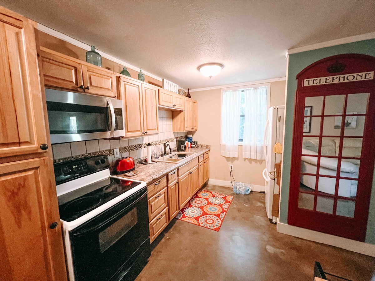 Vores lille bolig har fjernadgang og din egen veranda, hvor du kan sidde og nyde solnedgangen. Ca. 550 kvadratfod med mange faciliteter. Queensize-sengen er en murphy-seng og kan foldes sammen for at give dig mere plads. Der er også en udklapsseng, alt sengetøj er inkluderet. Denne type seng er bedst til et barn, en teenager eller en lille voksen. Vi har alpakaer, emuer, geder, kyllinger, ænder, kalkuner, hunde og katte. Logiet har køleskab, mikrobølgeovn, brødrister, crockpot, blender, vask, opvask.