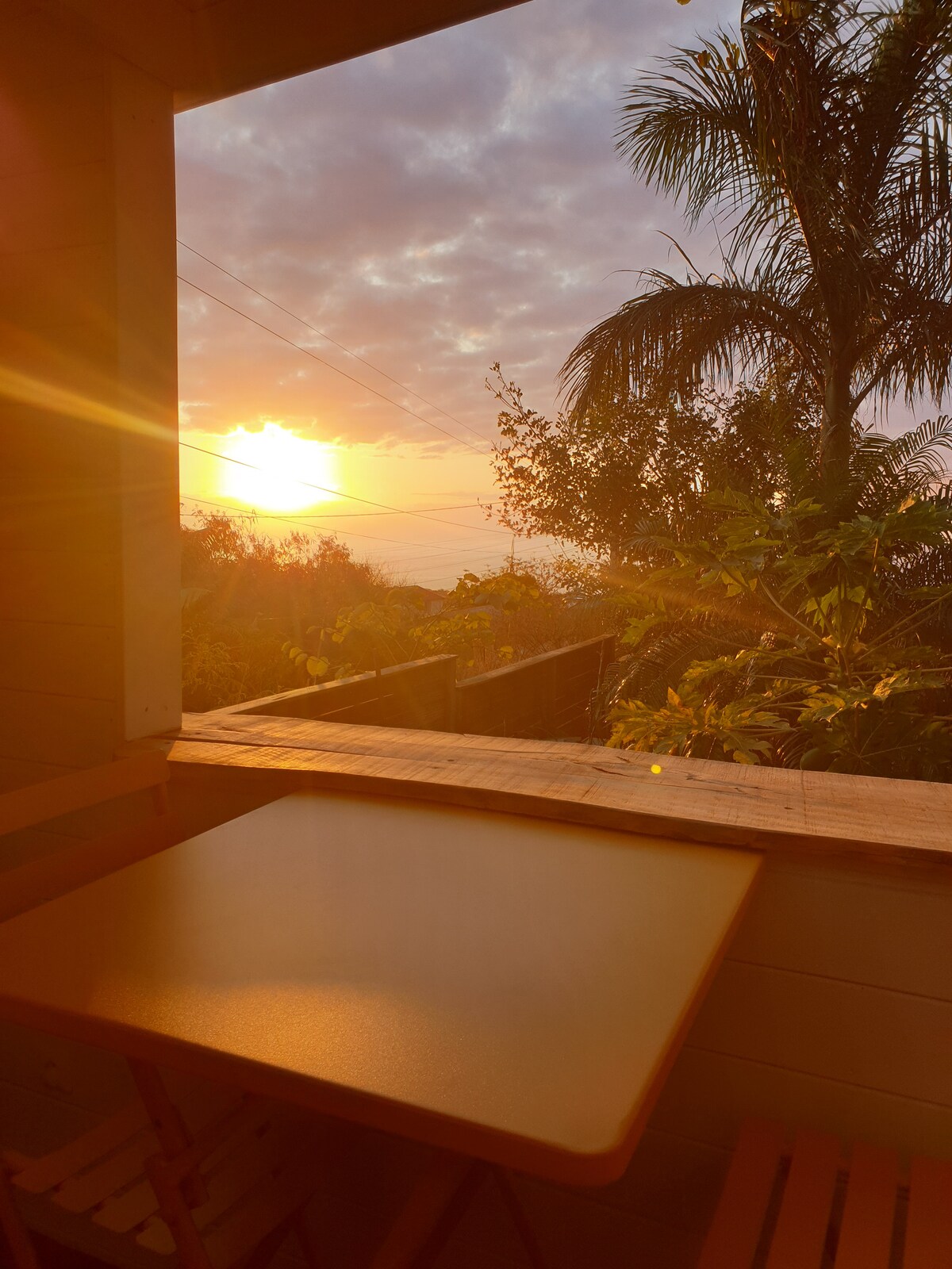 Rez de chaussée indépendant d'une case sur pilotis, situé dans une cocoteraie. Prévu pour 2 personnes, il est composé: - d'une chambre, d'une salle de bain extérieure (eau chaude) et WC, d'un espace ouvert sur l'extérieur avec coin cuisine équipée et d'un jardin avec jacuzzi et piscine. Situé en bord de mer en baie de Saint Paul dans une réserve naturelle exceptionnelle (cocoteraie et étang), près de commerce du centre-ville, du marché de Saint Paul et de la route des Tamarins. Endroit calme.