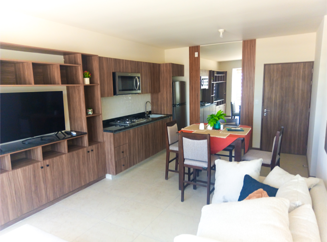 Beliggenhed Et par blokke fra Hipermart og Plaza 4 caminos. Nem adgang til offentlig transport. Den har aircondition, køkken, komfur, minibar. Lille balkon. Smart-tv. Wi-fi. Ved siden af vaskeri og strygning