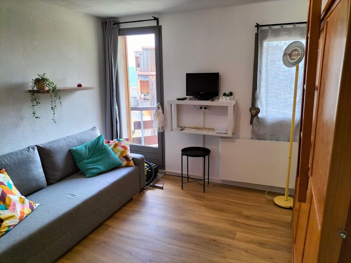 Hyggeligt bjergstudie i hjertet af Domaine des 7 Laux - Fuldt udstyret - 4/5 senge: 1 sovesofa 190x140, 2 køjesenge 190x90, 1 sammenklappelig seng 190x90 – En af de eneste med direkte adgang til ski-in/ski-out-skråningerne med 120 km skråninger - Sommer vandland, træklatring, mountainbike, tennis, bystadion, minigolf - Direkte adgang til butikker og restauranter – Attraktive vinter- og sommerresorter - Talrige afgangssteder for vandreture, sø... Fantastisk til et ophold med familie, par eller venner!