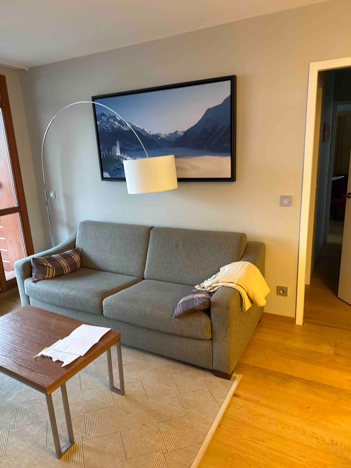 Behagelig 25 m² stor lejlighed til 4/5 personer, rolig og udenfor nogenes synsvidde, på 4. sal med udsigt over Mont Blanc-bjergene og skoven, balkon mod nord, ideel til en familie. Den er klassificeret som Quatre Cristaux Paradiski og ligger i hjertet af Arcs 1800 fodgængerstation i landsbyen Le Charvet, 50 meter fra Charvet busstation, meget tæt på alle butikker, restauranter og paskøbskasser. Adgang til og tilbagevenden fra skiløjperne er mulig.