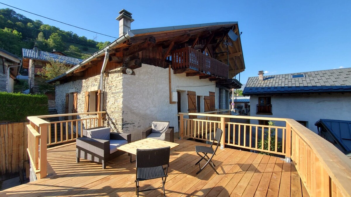 Kom og slap af i en lille traditionel og typisk landsby i Savoie - beliggende 6 km fra Bourg Saint Maurice - på solens skråninger i en lille helt ny lejlighed i en gammel renoveret gård. Du kan nyde alle bjergaktiviteter, både om vinteren og sommeren - Om vinteren er du tæt på skisportsstedet Les Arcs, og du kan tage afsted fra landsbyen på skiture med snesko eller slæde - Om sommeren kan du tage på smukke vandreture fra landsbyen -