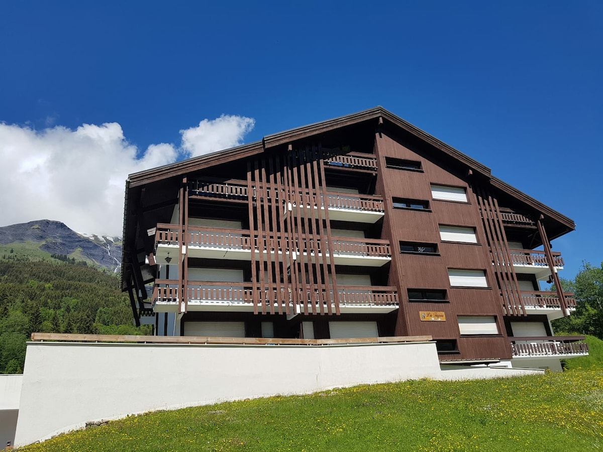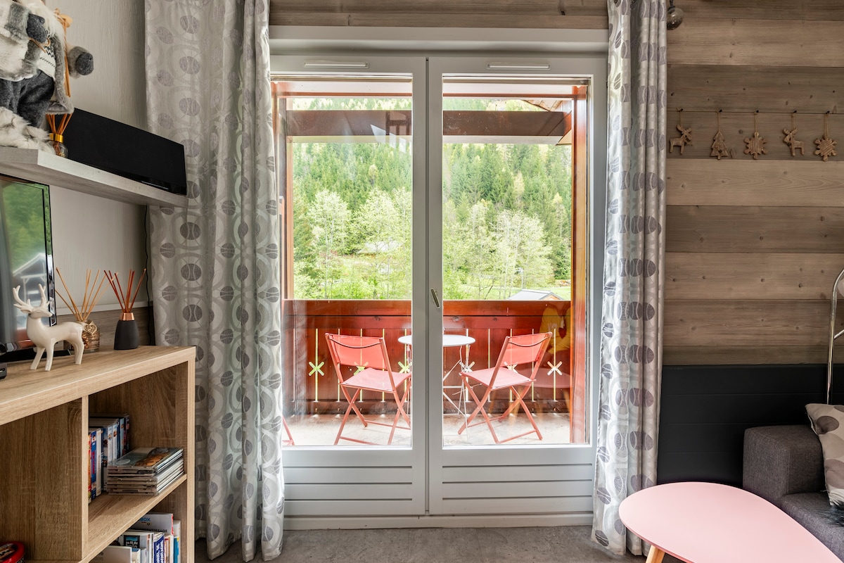 Vores lejlighed blev for nylig renoveret og har et fuldt udstyret køkken (opvaskemaskine, ovn, mikrobølgeovn). Dette er en pænt indrettet lejlighed på 26 m2. Glem små klaustrofobiske studier, uden plads til at lave mad eller til at organisere dit tøj og dine rejseartikler. Alt her blev tænkt på at give dig fremragende komfort i et par dage eller endda uger. 3 minutter fra skiliften og 10 minutter fra byens centrum (butikker, dagligvarer, restauranter). Chamonix ligger 33 km væk med bil, og Megève ligger 21 km væk.