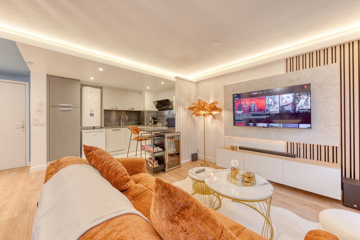 Elegance og komfort venter dig i denne ekstraordinære 30 m² studio med et elegant design, 28 m² terrasse med solsenge til to. Med hydromassagebruser, hjemmebiograf, IPTV og fiberinternet, sikker adgang via telefon, alt er designet til din komfort. Stille, butikker og transport i nærheden, en ideel beliggenhed i Pavillon-sous-Bois, let forbundet med Paris, CDG, Parc Astérix og Disneyland. Ideel til romantiske smutture, eksklusive ophold eller forretningsrejser.