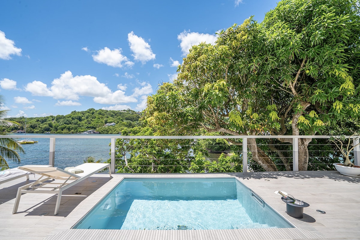 Stille, romantisk 2-værelses lejlighed 105 m2, intim med sit private "poolhus" rum, kun til dig med: spa, swimmingpool, grill, plancha, Ping Pong og afslapningsområde. Alt i grønne omgivelser med panoramaudsigt over Det Caribiske Hav, Mount Pelée og bugten Fort de France. Restauranter og butikker ligger 2 minutter i bil fra Bourg des Trois-Ilets, og de smukkeste strande ligger 10 minutter væk.: Den bedste geografiske beliggenhed for at besøge øen. Lukket parkering. Fiberinternet