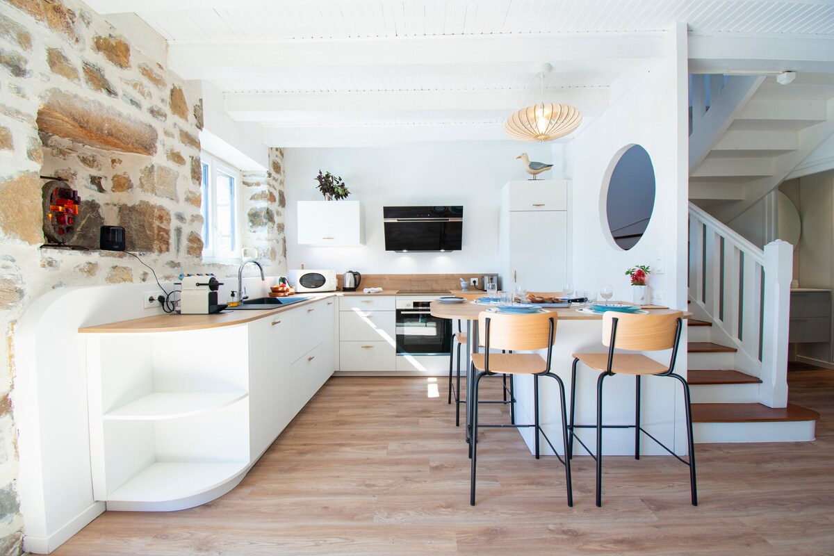 Et lille stenhus i den gamle landsby Kerzellec på malernes vej. Alt er tænkt på, så du kan genoplade dine batterier i ro og magi mellem bølgerne, der ligger 500 meter væk i slutningen af vejen, og fuglesangen. Du vil blive charmeret af dette gamle brødovn fra det 18. århundrede, der er blevet fuldstændig restaureret til et ophold i hjertet af Pouldu, hvor alt er inden for gåafstand: (i sæsonen) bageri, restauranter, barer, købmand, alt sammen omgivet af seks strande, der alle er lige så charmerende og forskellige.