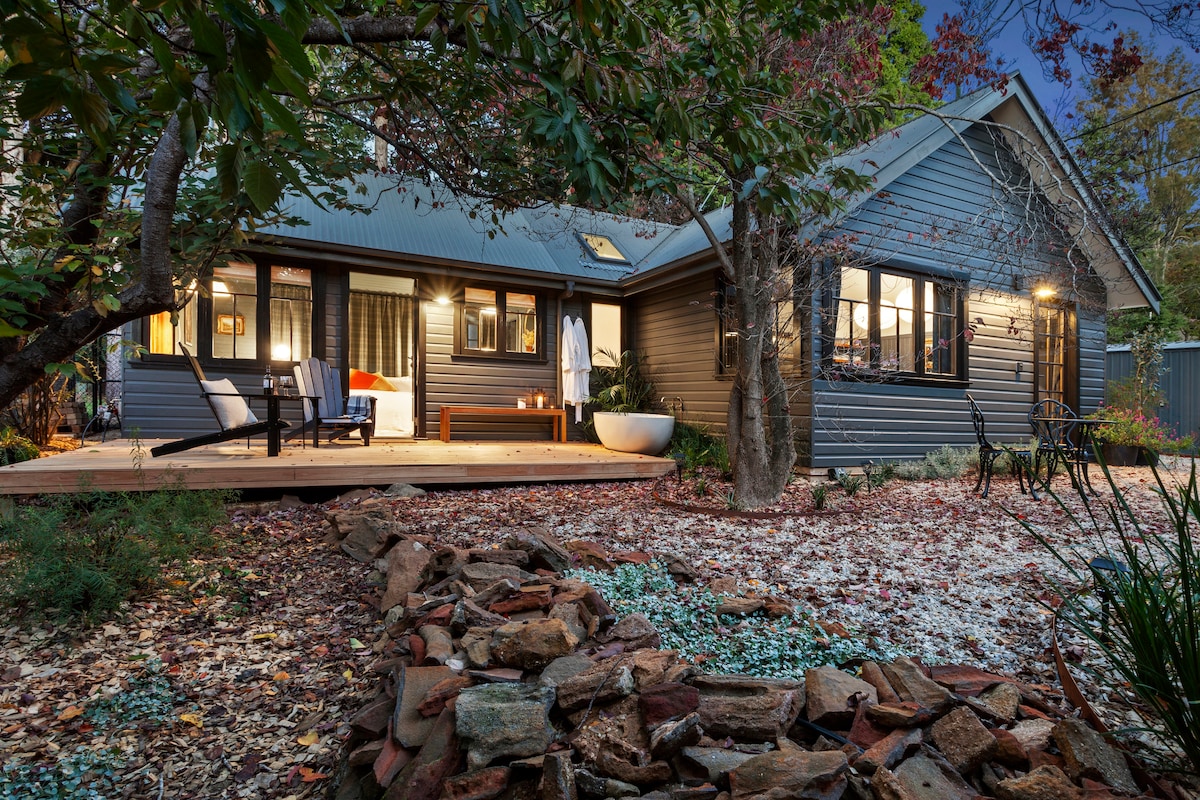 Slap af og lad op i denne rolige og stilfulde bolig. Hyg dig ved siden af brændeovnen, og fordyb dig i den varme, botaniske atmosfære. Tag en 15 minutters gåtur til de maleriske udsigtspunkter på klipperne og de spektakulære vandfald, eller slentr gennem det venlige, træbeklædte nabolag for at smage den lokale kaffe. Lyt til lyden af frøerne i dammen, og se de sorte kakaduer hvile i træerne, mens du sænker farten, genoplader og nyder den friske bjergluft, afskåret fra omverdenen blandt træerne.