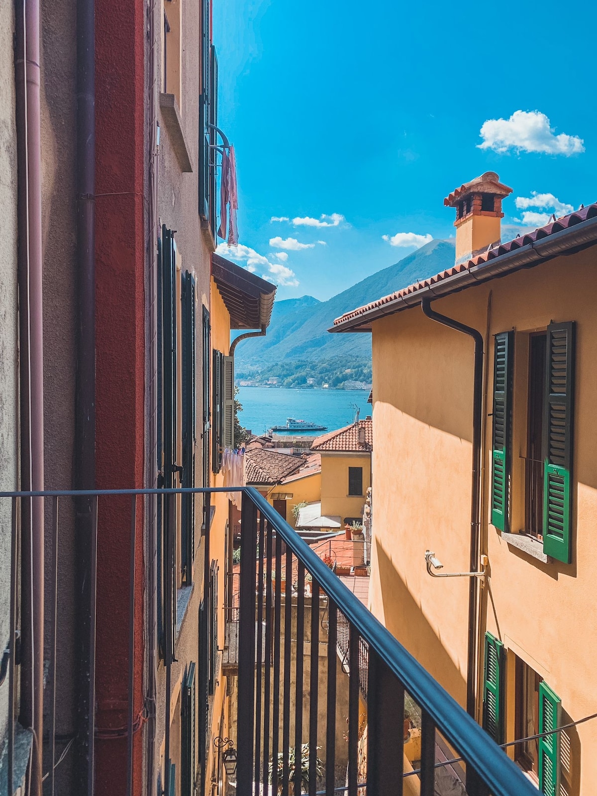 Fredfyldt og rolig søferie. En fantastisk 2-værelseslejlighed på 45 m² med privat terrasse og fælles have (delt med kun 2 andre enheder). Majestætisk 180° søudsigt fra både terrassen og værelserne. Kurateret interiør med moderne boho-chic design. Haven og terrassen har en fantastisk udsigt over søen (og George Clooneys villa lige på den anden side af kysten). Uforglemmelige solnedgange venter dig på søens mest maleriske feriested! 2 min. gang til den offentlige bådhavn og 5 min. til et sted, hvor man kan bade i søen.