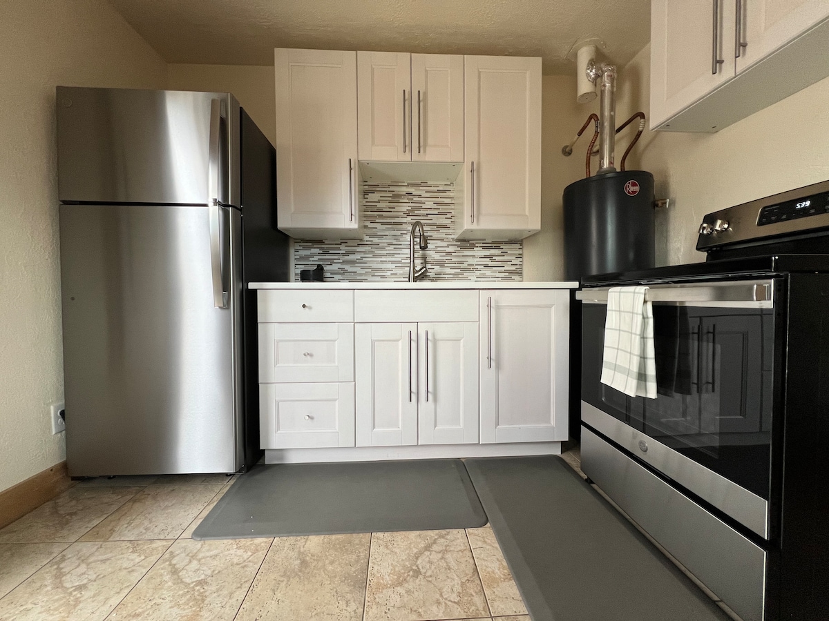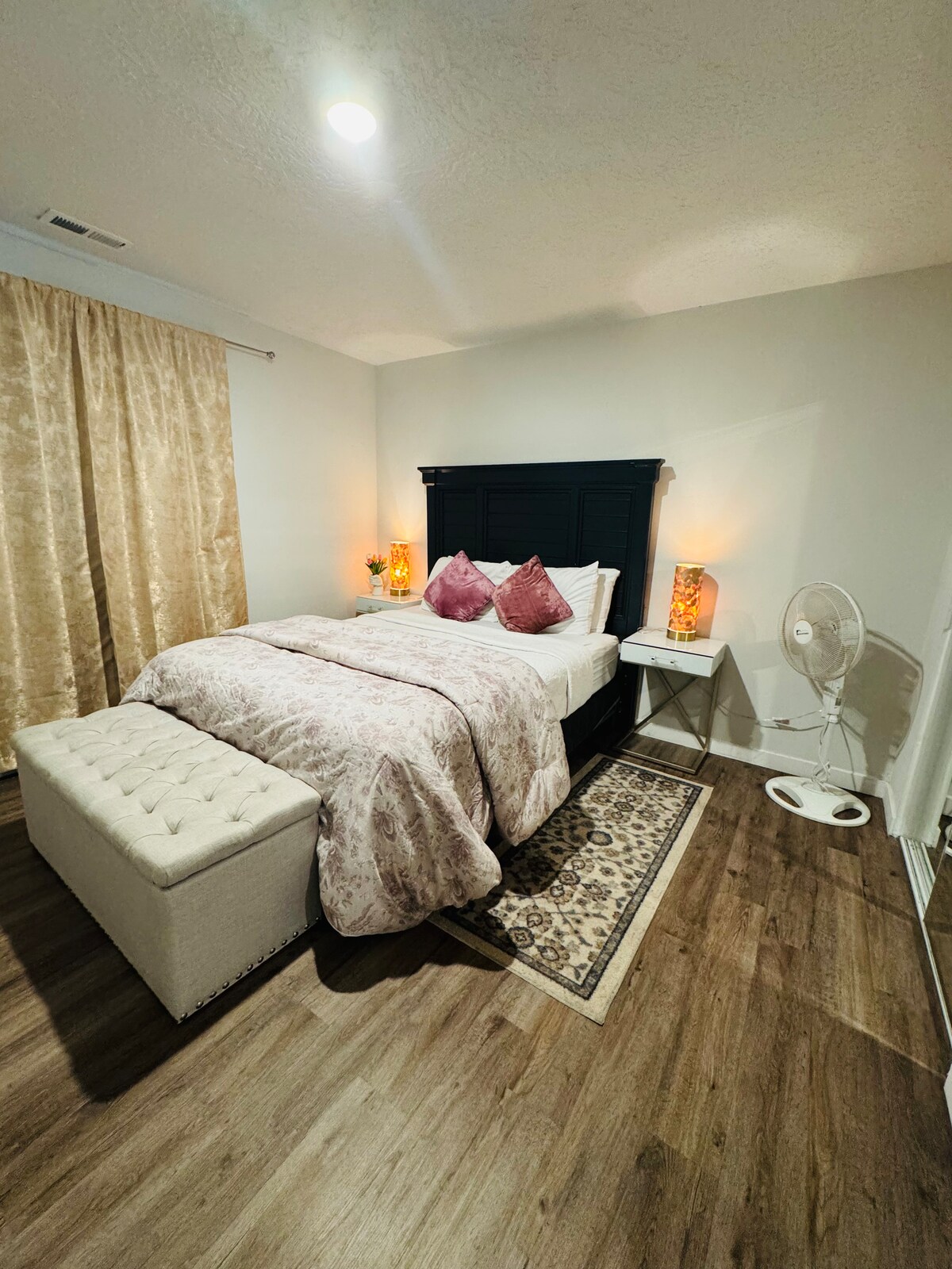 Smukt indrettet murstensbungalow med et soveværelse. Nyd den luksuriøse, men charmerende følelse af det specialbyggede gourmetkøkken med stor ø, kvartsbordplader, kombination af solide og glasfrontskabe, topmoderne rustfrit stål, smarte apparater, spørg Alexa om vejledning, vejret eller spil musik, og LG smartkøleskabets Wi-Fi-skærm vil svare. Badeværelse med fliser, europæisk bruseglas, subway-fliser, regnbrusehoved med optimalt vandtryk. Denne unikke bolig har sin helt egen stil.