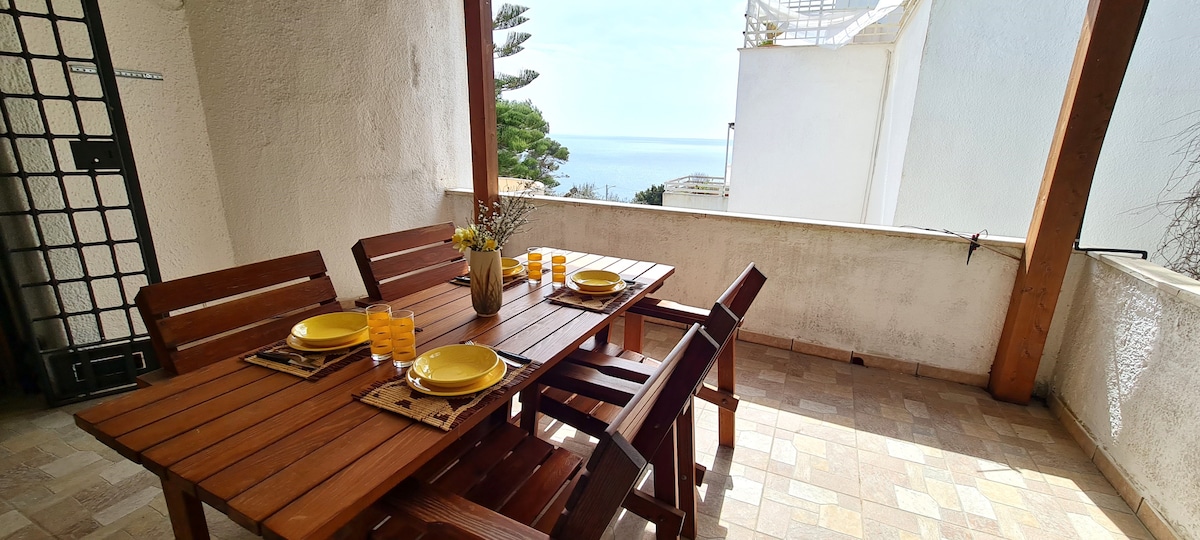 Rummeligt hus med masser af udendørs plads i to etager og foran Maldivernes strand i Salento. I stueetagen har et stort køkken-stue en sovesofa og det første badeværelse. På nederste etage, lyse og ventilerede, er der de 3 soveværelser med dobbeltsenge, hver med adgang til private indvendige gårde, og det andet badeværelse med bruser og vaskemaskine. Udenfor den store terrasse med havudsigt dækket af træpavillon og udstyret med bord, stole, liggestole, grill og udendørs bruser.