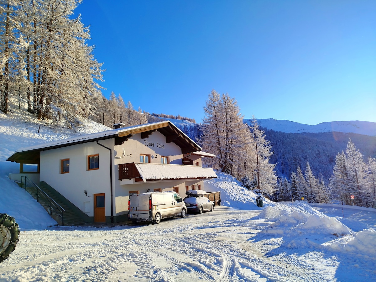 Vores træhus ligger i den sydlige udkant af Sillian, det er meget stille og solrigt og kun et par minutter fra landsbyens centrum. Den hyggelige lejlighed (ca. 110 kvm) med masser af atmosfære ligger i stueetagen med privat adgang til terrassen og haven. Den rummelige stue og store køkken-stue har begge en brændeovn og store vinduer med smuk udsigt over den økologiske have og de omkringliggende bjerge.