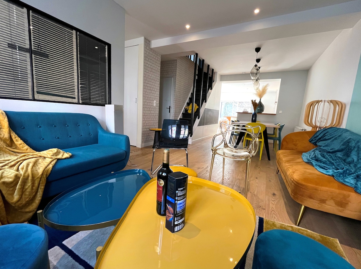 Elegant 120 sqm house at the gateway to Vieux Lille • 10 min walk • 100 m from all shops • 7 min from the tramway • Quiet & pleasant street Ideal for group stays • 5 refined bedrooms • 5 to 9 flexible sleeping arrangements • 2 bathrooms & 2 toilets • Bright, spacious and open-plan living area Warm and inviting living space • Fully equipped open kitchen • Large dining area with table for 10 guests Cozy and intimate outdoor patio Experienced host since 2016 (SymbioHome Lille Centre)