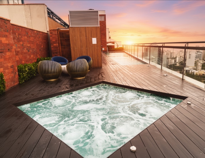 Luksuslejlighed med pool, jacuzzi, kontorfællesskab, yoga