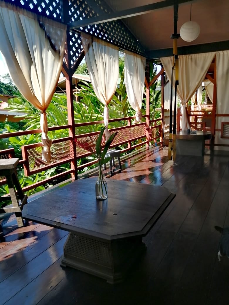 Huset ligger på en smuk bakke i junglen, og det er specifikt bygget mod en af de smukkeste udsigter, du vil opleve! Det er omgivet af mange Ara-reder, så de er almindelige besøgende i løbet af solnedgangens aftentimer. Du kan også se edderkopper, brøleaber, dovendyr og mange flere i grenene af gamle træer på ejendommen. Der vokser mange frugter i haven, og du er velkommen til at nyde dem, der er i sæson, når du besøger os!