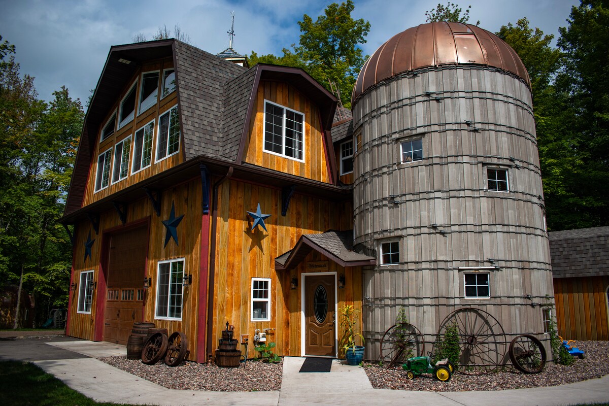 Slap af og lad op i denne fredelige, unikke øverste lade (ikke handicapvenlig) i Northwoods i Wisconsin. Denne børnevenlige oase, der kombinerer rustik charme med moderne komfort, har et udendørs legeområde og et finurligt legehus. Den mindeværdige arkitektur omfatter en fantastisk vindeltrappe, der er lavet af træer fra vores 1,8 hektar store ejendom, og som fører op gennem en genbrugt silo. Hver detalje i Friedenswald fortæller en historie. (Vindeltrappen er ikke handicapvenlig.)
