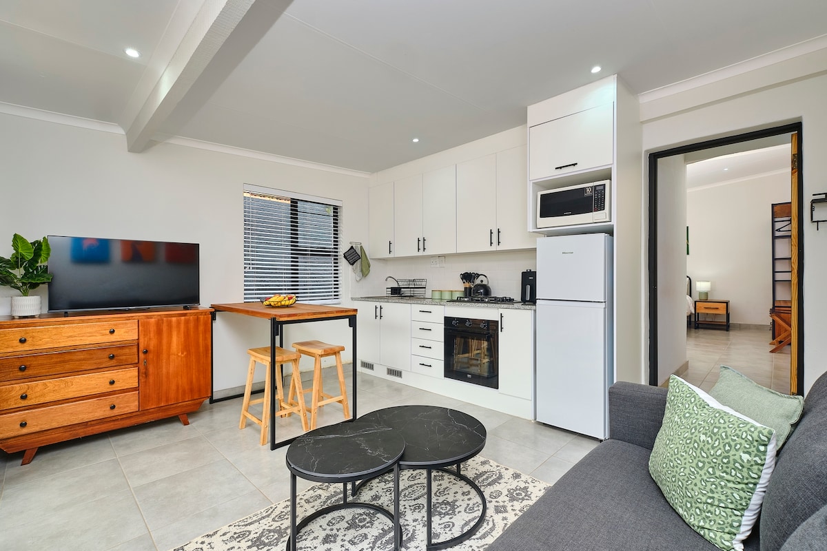 Rummelig og moderne selvstændig hytte i et sikkert område tæt på Randburg, Rosebank og Sandton (kun 6 km til Sandton City og Gautrain). Hytten har privat adgang, med sikker parkering inde på stedet og omfatter en stor udendørs terrasse og fredelig privat have. Uanset om du er i Joburg på forretningsrejse, besøger venner og familie eller er på sightseeing, er hytten fuldt udstyret med alle moderne bekvemmeligheder og Wi-Fi. Vi glæder os til at byde dig velkommen til vores smukke feriebolig.