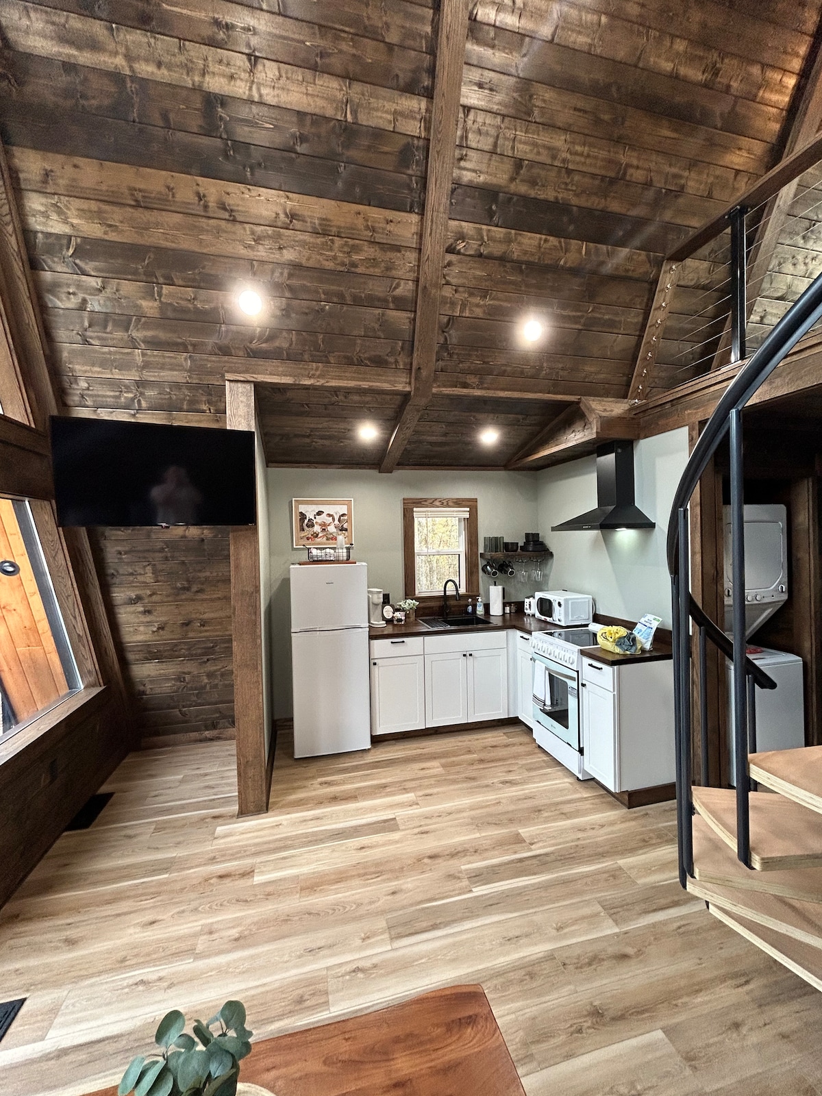 Flygt fra det hele i denne charmerende, nybyggede hytte med 2 private soveværelser med kingsize-seng, 1 loft, 3 senge, 2 badeværelser, 5 sovepladser Slap af på verandaen, mens du lytter til de beroligende lyde fra en pludrende bæk, der strømmer over klipperne. Hvis du søger en rolig atmosfære, er dette den perfekte ferie. Ejendommen tilbyder privatliv og masser af sjove udforskningsmuligheder for besøgende i alle aldre. Loftet er et lille afsides rum med en soloplader til elektronik og et vindue med udsigt over åen