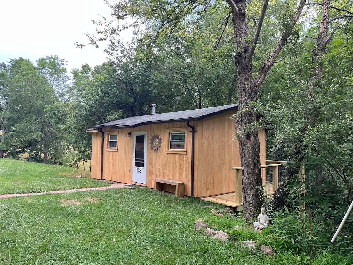 Charmerende træhytte i fantastisk beliggenhed i Floyd County kun til 2 gæster. Stort familierum med gaspejs. Separat soveværelse med queensize-seng, veludstyret køkken og enkelt badeværelse med brusebad. Beliggende ~22 minutter fra I-81, 35 minutter fra Virginia Tech, 22 minutter fra Floyd Country Store, & ~ 40 minutter til Roanoke. Ingen rygning/vaping på ejendommen. Vores hjem ligger ved siden af/kan ses fra hytten. Vi er tilgængelige, hvis du har brug for noget, men vi respekterer din tid og giver dig dit privatliv.