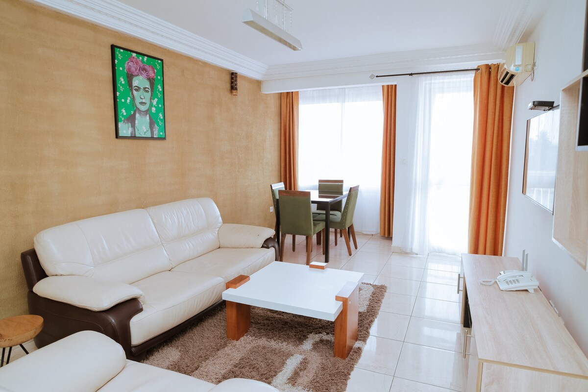 Beliggende i Bonapriso, slappe af i denne nye, meget funktionelle og autentiske indkvartering i en meget sikker bolig. Du vil have 2 uafhængige soveværelser, en stor stue(stue, spisestue,bar, læseområde) og et åbent og funktionelt køkken. En concierge, en områdetekniker (8-16) og en vagtmester sørger for en personlig opfølgning under mit tilsyn. Du nyder godt af udendørs parkering, Wi-Fi(5 GB/dr), smart-tv, Canal Sat Evasion-abonnement.
